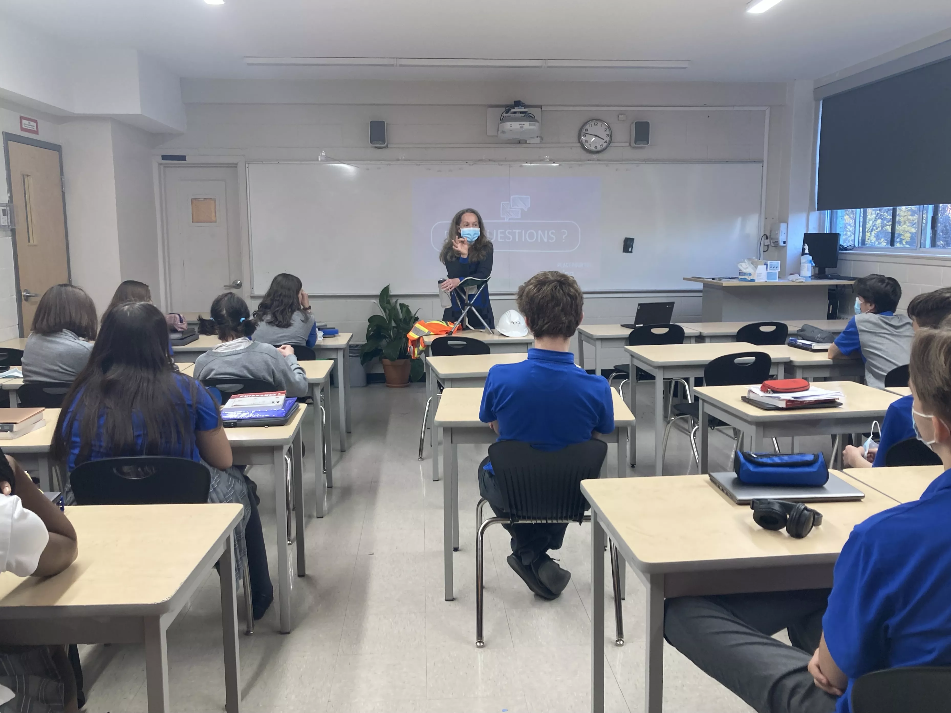 Manuelle Croft en train de réaliser une présentation dans une école. Crédit photo EXP